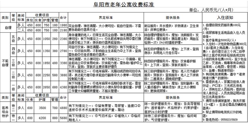 注:以上关于阜阳市老年公寓的价格收费及服务内容以实地洽谈为准!